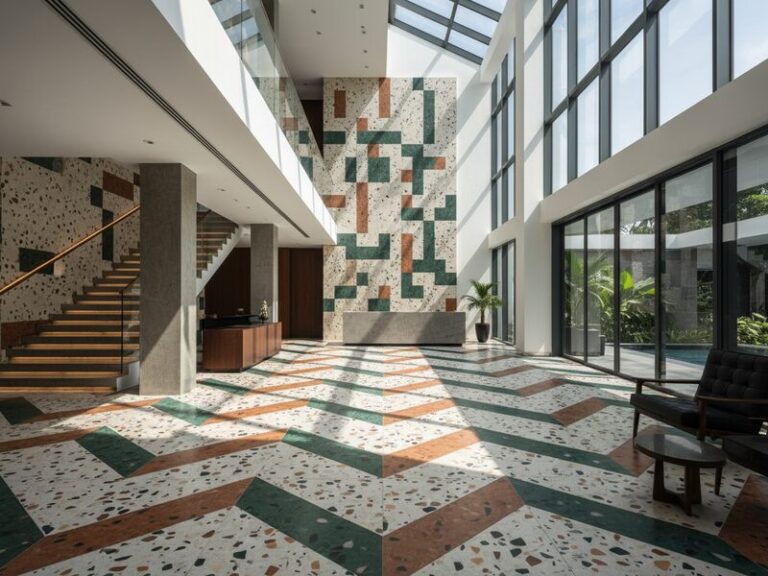 It uses our exquisite marble tiles to create a luxurious atmosphere, blending elegance with durability.